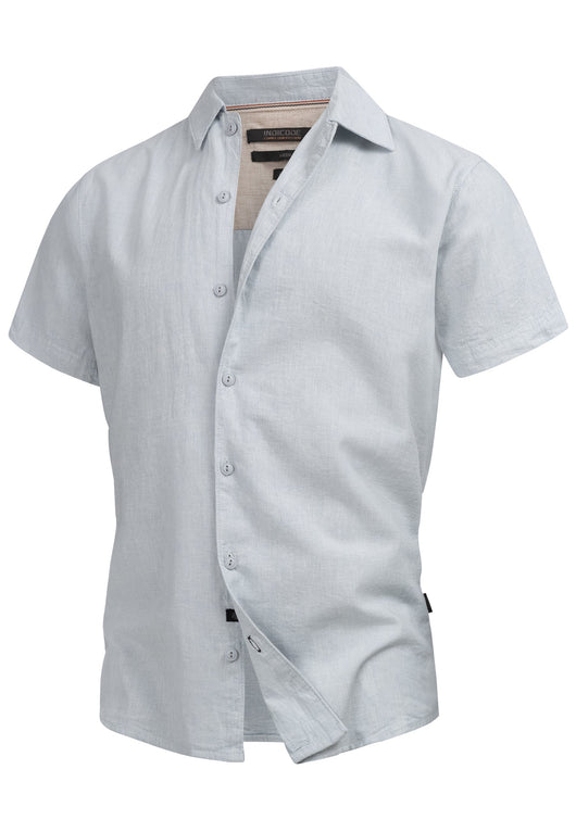 Embrace summery lightness and stylish casualness with this short-sleeved shirt from INDICODE. It combines classic simplicity with modern details, making it the ideal choice for warm days - whether for everyday wear, on vacation, or while strolling around town. Men's INGiulionus short-sleeved shirt in a cotton-linen blend