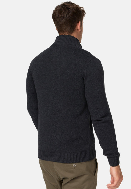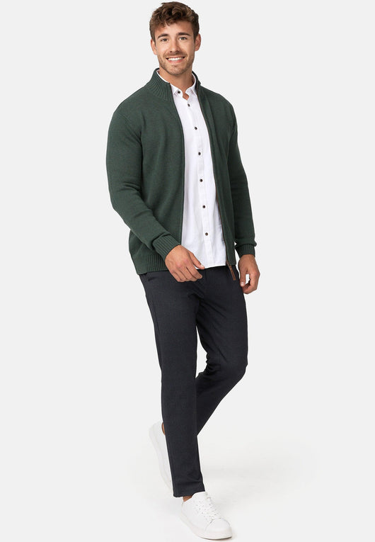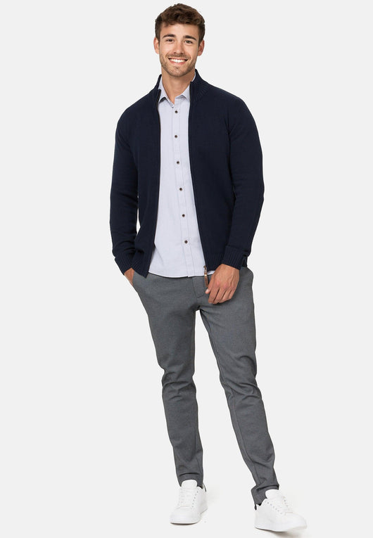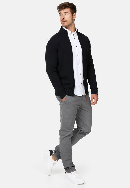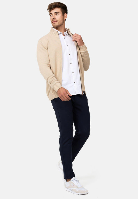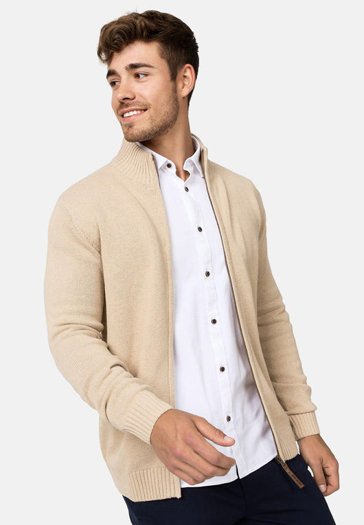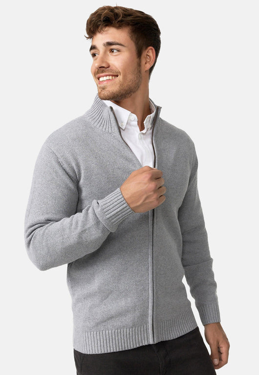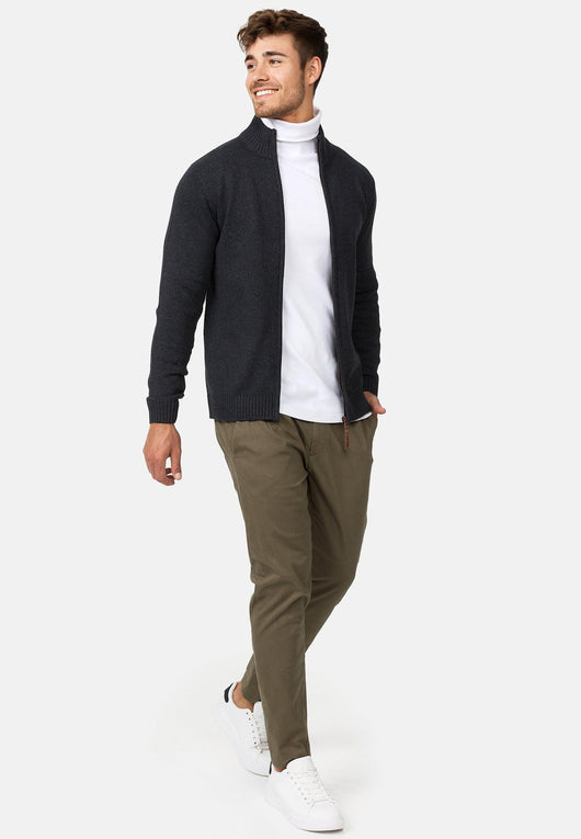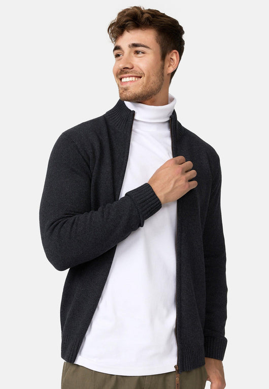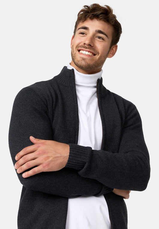 This high-quality zip-up cardigan combines classic style with exceptional comfort and functionality. The straight, slightly loose cut ensures a relaxed fit that hugs the body comfortably and guarantees optimal freedom of movement. Men's INLut Fine Knit Cardigan with Stand-Up Collar and Zipper